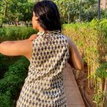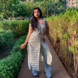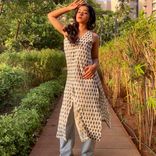 A breezy indigo-printed cotton kurta with a V-neck and side slits—your go-to for chic everyday styling.