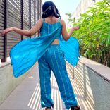 Blue striped kurta set with minimal detailing, perfect for summer days.
